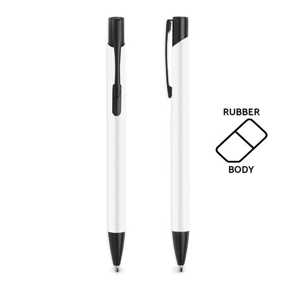 Esferográfica em alumínio, com acabamento em borracha Aluru