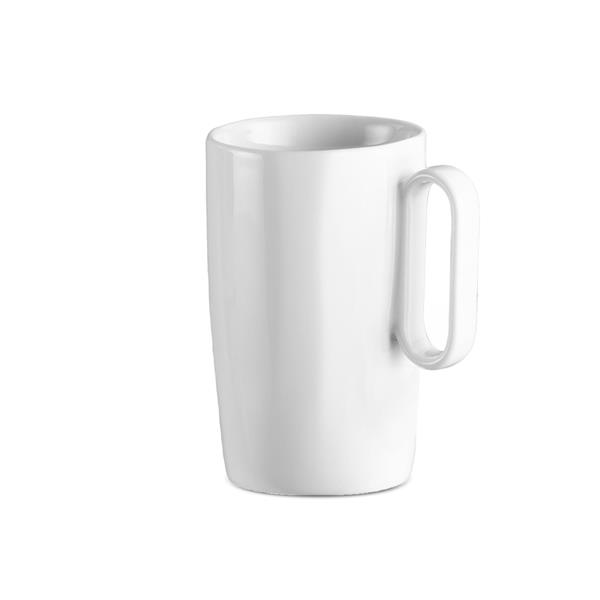 Caneca de cerâmica 330ml. Para substituir a necessidade de utilização de canecas de plástico ou papel de uso único, as nossas canecas em New Bone China são projetadas para uso doméstico ou no escritório. Estas canecas estão diponíveis em 3 tamanhos: 80ml para os amantes do café expresso, 250ml para os aficionados do café com leite e café europeu e 330ml para os viciados em chá. . "new" Bone China é o mais refinado dos materiais de mesa. "new" Bone China é a mais forte das porcelanas ou cerâmicas, possuindo altíssima resistência mecânica e física e resistência a lascas. É conhecido por seus altos níveis de brancura e translucidez. A nova bone China é um material sustentável. É feito de materiais naturais abundantes e pode ser reciclado. Além disso, é durável e duradouro e não emite gases químicos nocivos.