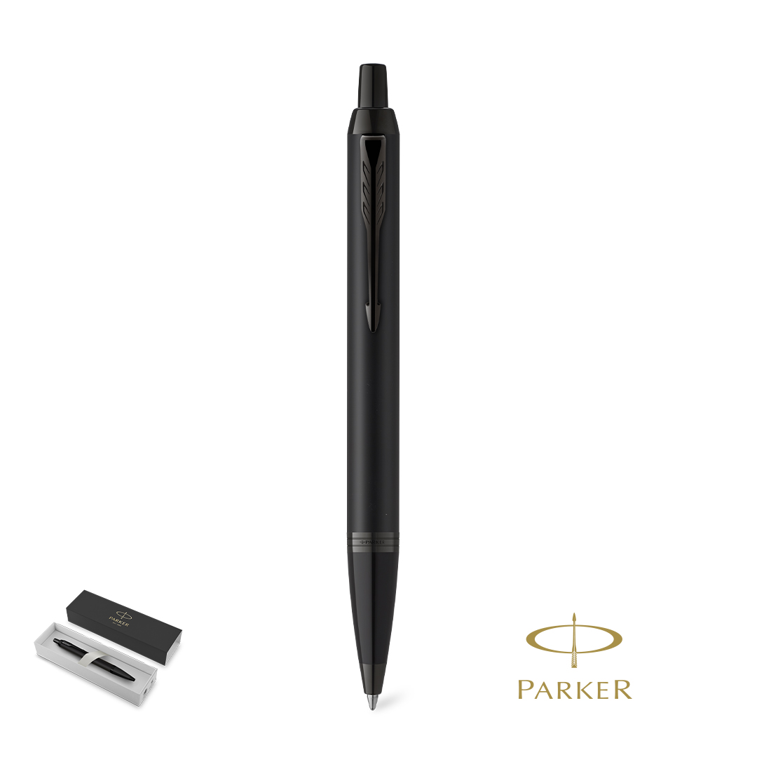 Esferográfica Parker IM Achromatic, fabricada em aço inox de acabamento lacado em preto mate, com mecanismo de pressão e tinta azul. Com adornos pretos e inconfundível clip com a forma icónica em flecha da marca, também em preto. Um design elegante, refinado e de eficácia comprovada, complementado com uma silhueta moderna. Apresentação em estojo individual preto com logotipo Parker.Parker IM é a gama de entrada no universo Parker, cuidada em cada detalhe e pensada para o uso intensivo diário. Com tinta Parker Quink, que oferece uma escrita fluída e fiável sobre o papel.