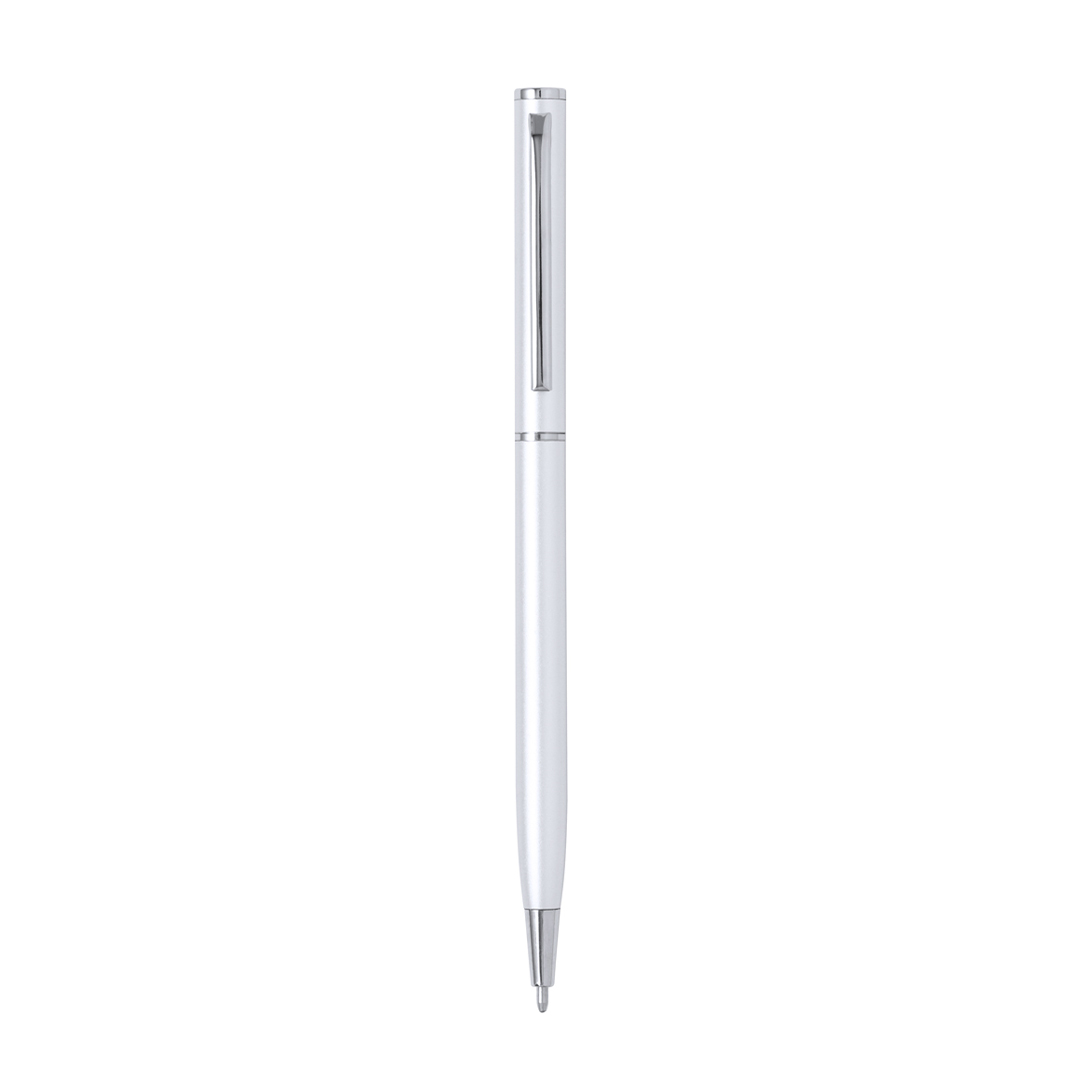 Esferográfica com corpo em alumínio reciclado. Clip de metal e acessórios cromados, com mecanismo giratório e tinta azul. Com logotipo de Alumínio Reciclado.O Alumínio Reciclado é um material com possibilidades quase infinitas de reciclagem, mantendo suas propriedades originais e consumindo menos energia nesse processo. Certificação GRS (Global Recycled Standard/Norma Global de Reciclagem), que garante a origem reciclada do material utilizado no fabrico do produto.