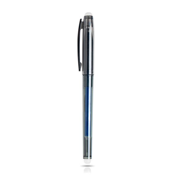 Esferográfica em plástico, escrita azul. Esta esferográfica com tinta especial para utilizar no bloco infinito escreve em qualquer tipo de papel mas só nos blocos especiais de papel sintético ou papel pedra é que permite que com água ou fricção do pano a tinta seja apagada. Continue a reutilizar o seu bloco infinito com esta opção de escrita.