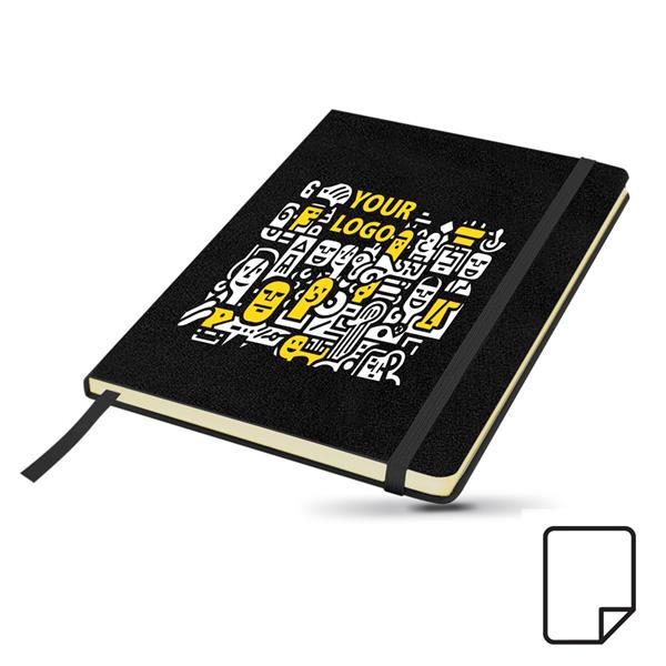 Bloco de notas A5, com capa em cartão e bolsa. Bloco com 160 páginas lisas de 70g, proveniente de florestas geridas de forma responsável. Capa colorida, com elástico e fitilho à mesma cor. Ótimo para personalizar. Associe-se à beleza da simplicidade.
