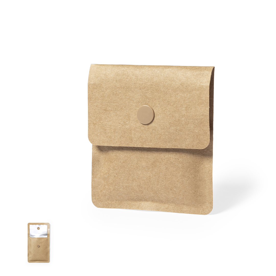 Cinzeiro de bolso de linha nature, com exterior em papel reciclado laminado e interior em alumínio retardador de chama. Aba com fecho de mola a condizer.