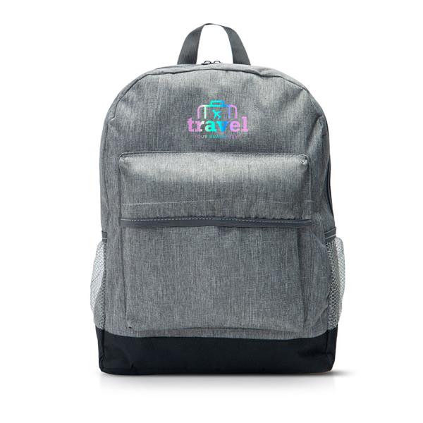 Mochila em P-600D, para portátil. Uma mochila de ar moderno, com uma barra colorida no fundo, e um bolso frontal. No interior tem uma bolsa apropriada para guardar o seu portátil. Personalize esta mochila e associe-se à moda e ao conforto.