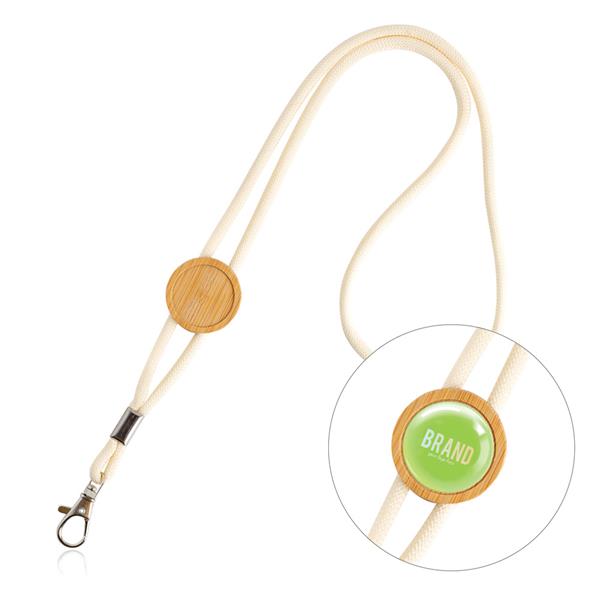 Esta lanyard destaca-se pelo seu design tubular, conferindo-lhe um toque moderno e descontraído. O ajustável em bambu foi especialmente desenhado para personalização através de resina. Adicione o seu logotipo, slogan ou design exclusivo para criar uma peça única que reflete a identidade da sua marca. Para tornar a personalização mais fácil, pode adquirir a nossa resina 370487, criada especialmente para este ajustável.