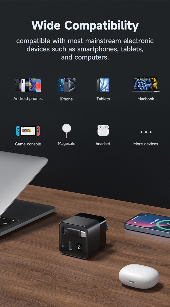 Carregador Gan Mendoza com Cabo Retráculo de Vitamina 65W urbana