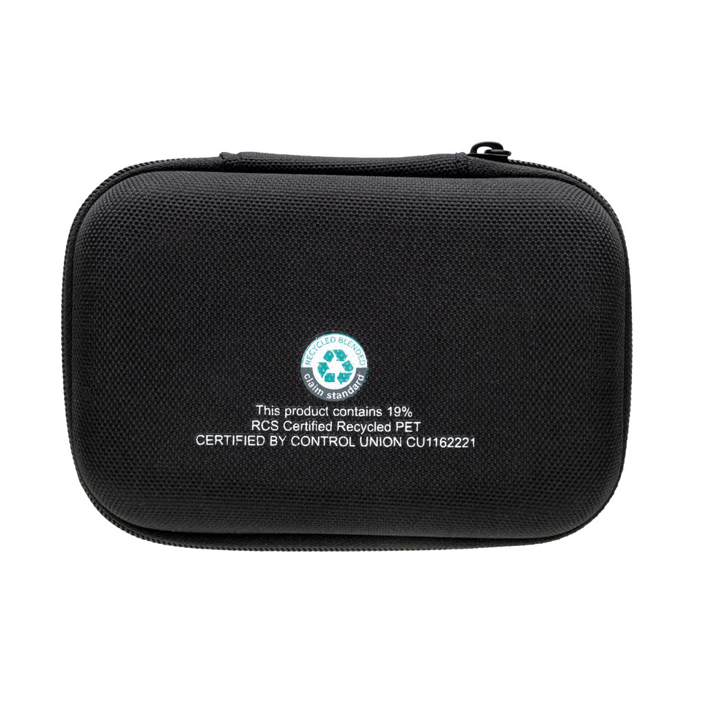 Conjunto de carregamento rápido de 20 W de 3 peças para dispositivos móveis e outros dispositivos pequenos. Com adaptador EU com porta USB C de 20 W, powerbank de 5000 mAh e cabo de carregamento rápido TPE reciclado de 120 cm e 60 W (USB C para USB /Lightning). O cabo suporta transferência de dados e também carregamento de dispositivos maiores, como laptops. Adaptador, powerbank e cabo fabricados com PC reciclado certificado RCS, ABS e TPE reciclado. Apresentado em saco confeccionado em PET reciclado com certificação RCS. Conteúdo total reciclado de todo o conjunto: 59% com base no peso total da peça. A certificação RCS garante uma cadeia de fornecimento de materiais reciclados totalmente certificada. Apresentado em embalagem FSC®. Sem PVC. Carregador de parede com entrada AC 100-240V 50/60Hz 0,6A; Carregador de parede com saída USB-C: 5,0V⎓3,0A, 9,0V⎓2,22, 12,0V⎓1,67A (20W máx.). Saída do banco de potência 5V⎓2.4A -C Entrada: 5V⎓2.4A