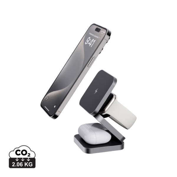 Carregador 3 em 1 dobrável em alumínio reciclado Terra RCS de 15 W