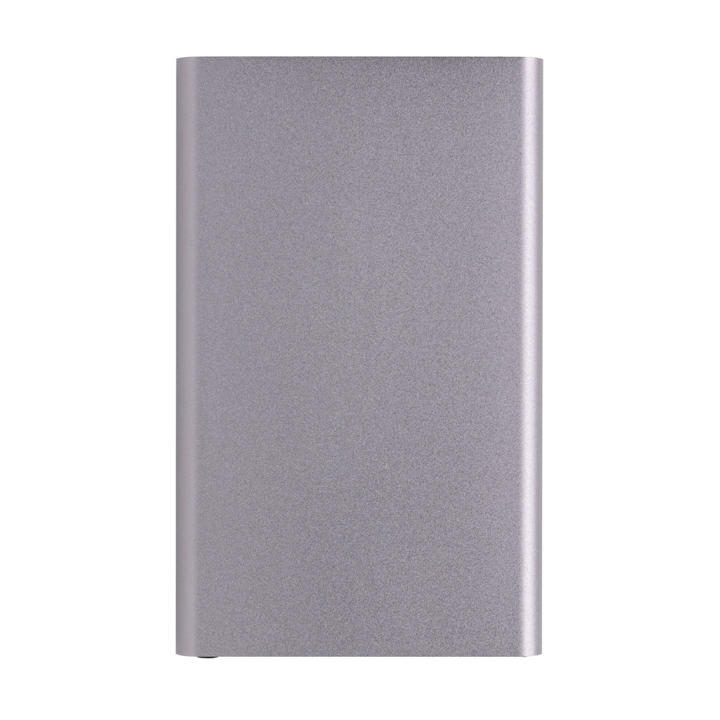 Powerbank de design plano de 4000 mAh com caixa feita de alumínio reciclado/plástico ABS certificado RCS. RCS (Recycled Claim Standard) é um padrão para verificar o conteúdo reciclado de um produto ao longo de toda a cadeia de abastecimento. Conteúdo reciclado total: 36% com base no peso total do item. O powerbank suporta carregamento USB A e Tipo C. Ele contém uma bateria de polímero de lítio Grau A de 4000 mAh de longa duração. Os indicadores de energia indicarão o nível de energia restante para que você sempre saiba quando recarregar.; Entrada tipo C 5V/2A; Saída tipo C: 5V/2A Saída USB A: 5V/2A. Artigo e acessórios sem PVC. Inclui cabo de carregamento TPE reciclado certificado RCS. Apresentado em embalagem mista FSC®.