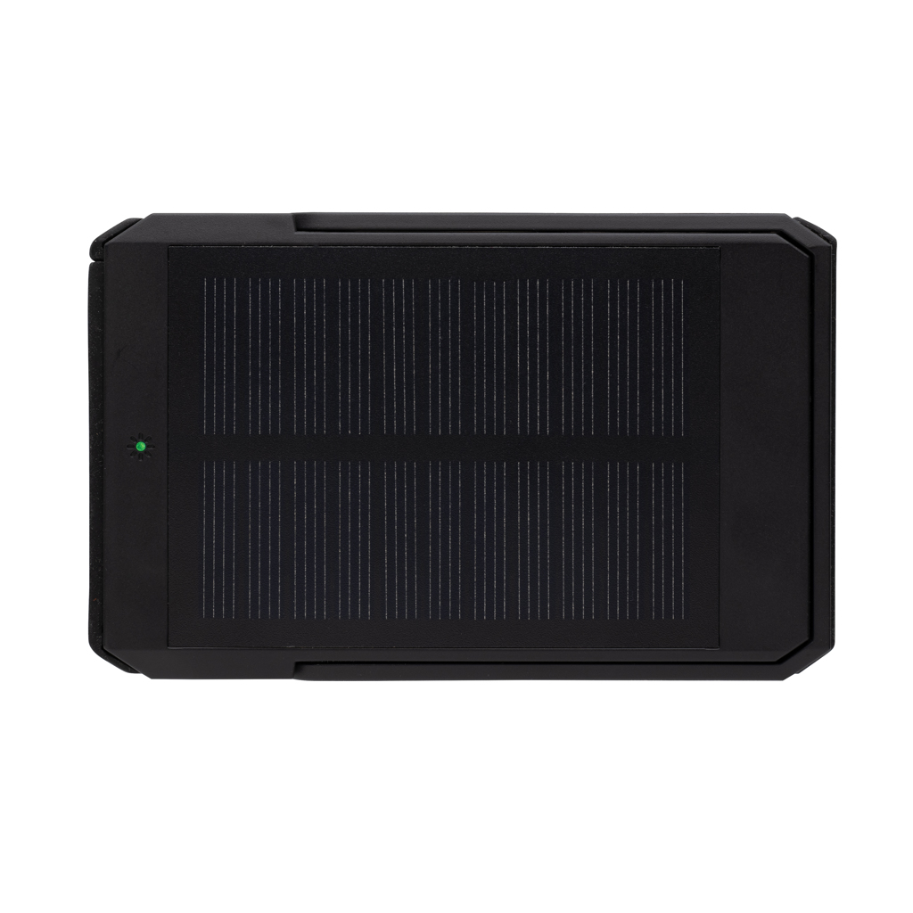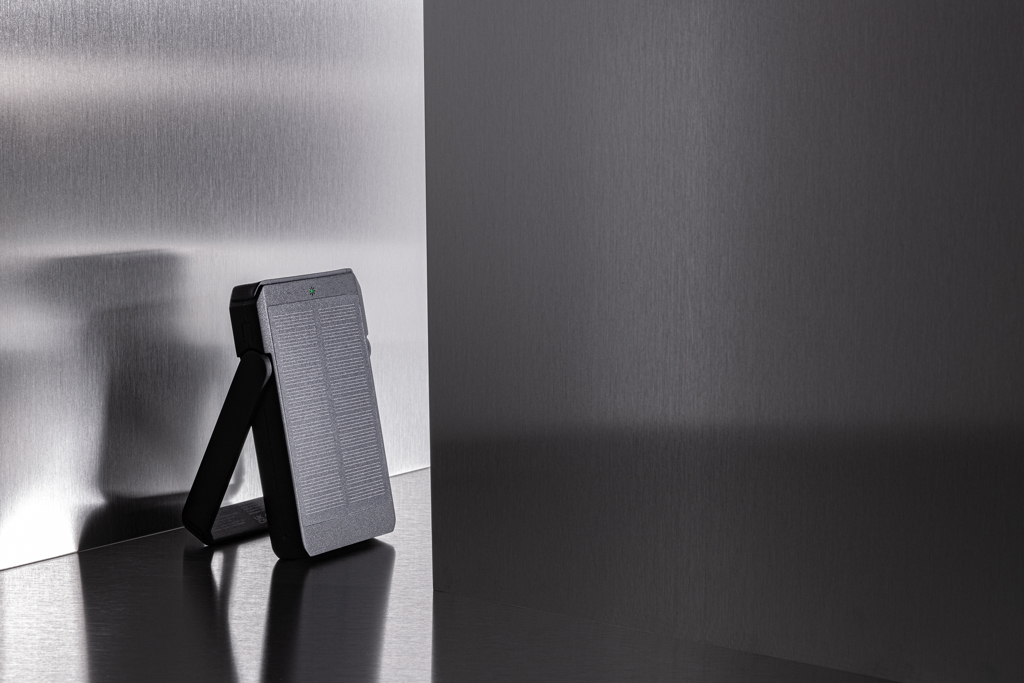 Banco de energia solar de 5.000 mAh feito com ABS reciclado certificado RCS. Conteúdo total reciclado: 21% com base no peso total do item. A certificação RCS garante uma cadeia de abastecimento totalmente certificada para materiais reciclados. O powerbank utiliza painéis solares monocristalinos de alta qualidade com uma taxa de conversão de 19%. A taxa de carregamento depende das condições. Com função de suporte integrada para utilizar os painéis solares num ângulo ideal. O powerbank contém uma bateria de lítio Grau A de 5.000 mAh de longa duração. Com carregador magnético sem fio de 10W para carregar seu telefone sem cabos. Velocidade de carregamento solar: 5V/130mA. Entrada tipo C: 5V/2A. Saída: USB A: 5V/2A Tipo C: 5V/2A. Artigo e acessórios sem PVC. Inclui cabo de carregamento TPE reciclado certificado RCS. Apresentado em embalagem mista FSC®. Design Registrado®