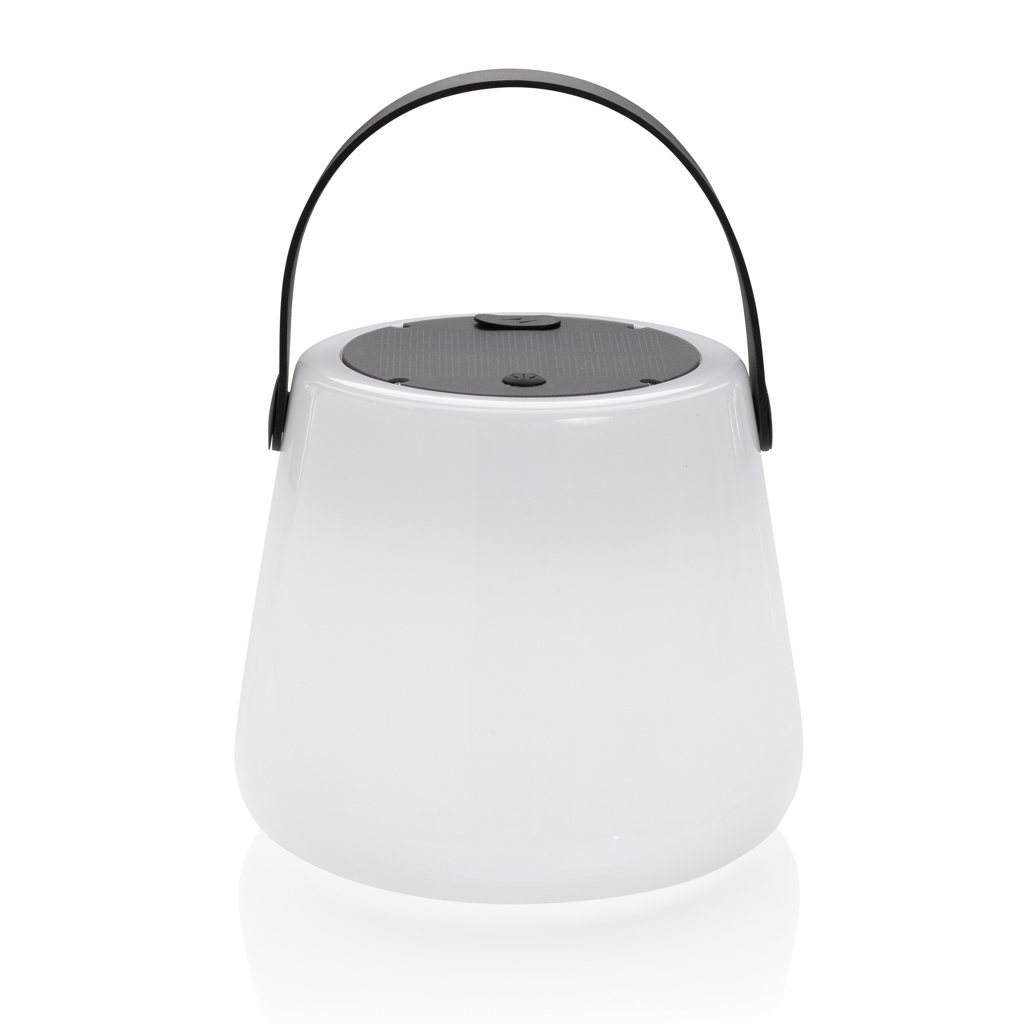 Candeeiro de mesa solar LED feito de ABS reciclado certificado RCS. Conteúdo total reciclado: 71% com base no peso total do item. A certificação RCS garante uma cadeia de fornecimento de materiais reciclados totalmente certificada. A lanterna usa uma bateria de lítio recarregável de grau A de 1200mAh, portanto não há necessidade de substituir as baterias. Basta recarregá-lo através da tomada USB e da porta Type-C integrada. Inclui cabo de carregamento de 80 cm. Tempo de carregamento com fio: 3 horas. 10 horas sob a luz solar proporcionarão até 3-4 horas de trabalho. Tempo de trabalho com carga total: 20 horas. IPX4 à prova d’água.