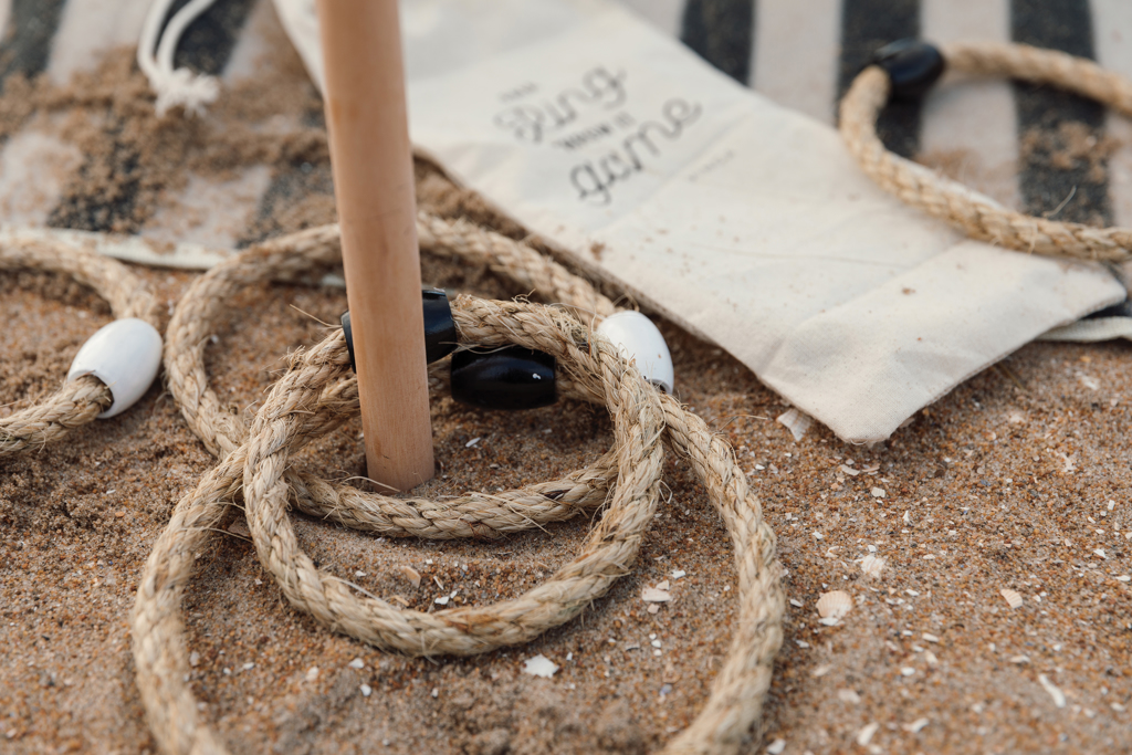 Um jogo ao ar livre que funciona tão bem na praia como no parque, apresentado num saco de lona para facilitar o transporte. O jogo consiste em lançar cordas em forma de círculos sobre uma vara simplesmente presa ao chão. Diferentes tamanhos de anéis fornecem diferentes quantidades de pontos. Um manual de instruções completo está incluído.