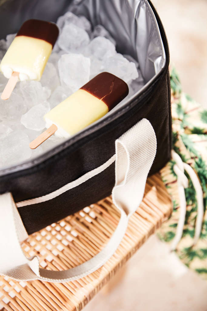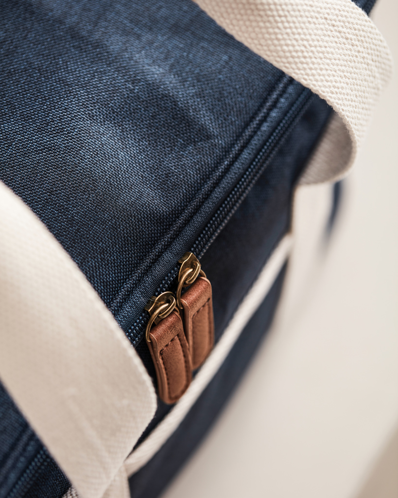 A geladeira definitiva, marmorizada tom a tom com detalhes em imitação de couro e algodão. Há também um pequeno compartimento na parte externa da bolsa térmica, que também oferece espaço para outros itens. O grosso acolchoamento em PEVA garante que o frio seja retido por muito tempo. Também é fácil de limpar e secar após o uso. Graças à alça ajustável e à alça dupla, você tem várias maneiras de transportar o cooler.