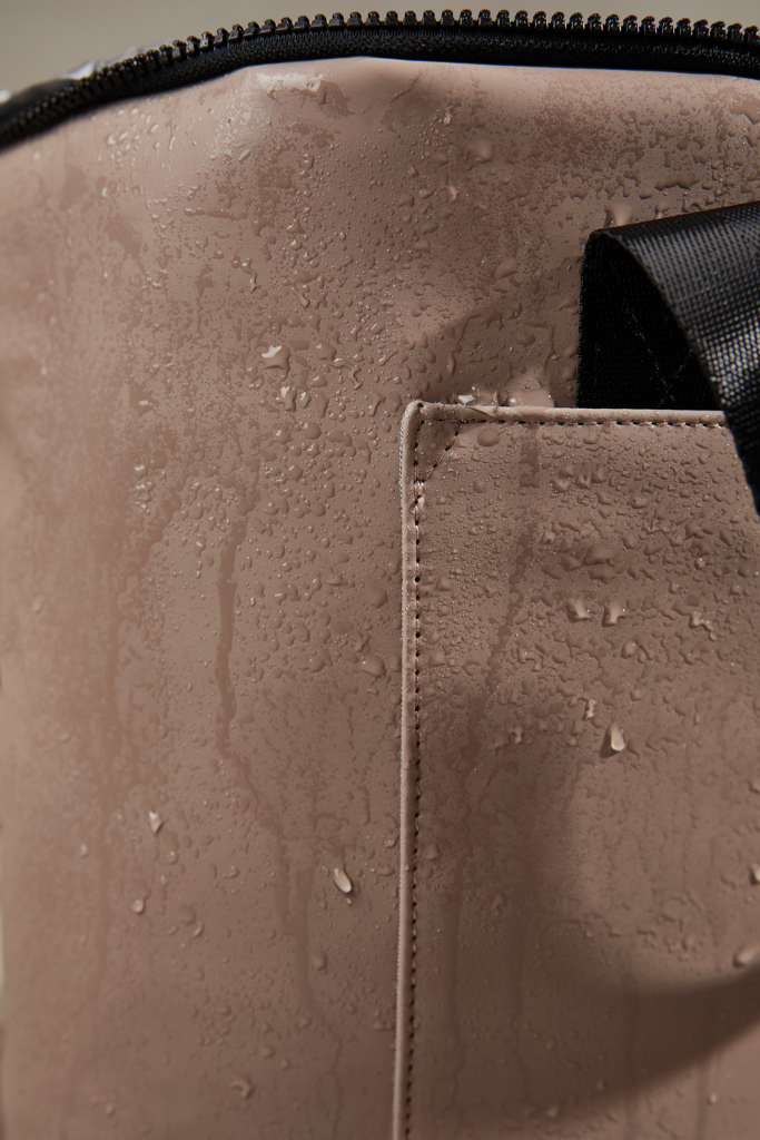 Uma mochila térmica minimalista feita de PU nobuck repelente à água. Esta mochila mais fria é isolada com espuma extra grossa e forrada com PEVA, um material fácil de manter limpo e fresco. Uma mochila fantástica para a praia, barco ou aventura na natureza.
