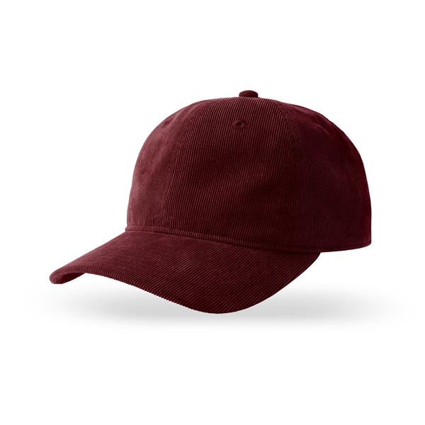 Boné de baseball não estruturado de 6 painéis em bombazina de poliéster reciclado com pala intermédia e fecho de fivela metálica. Aspeto vintage e toque de conforto