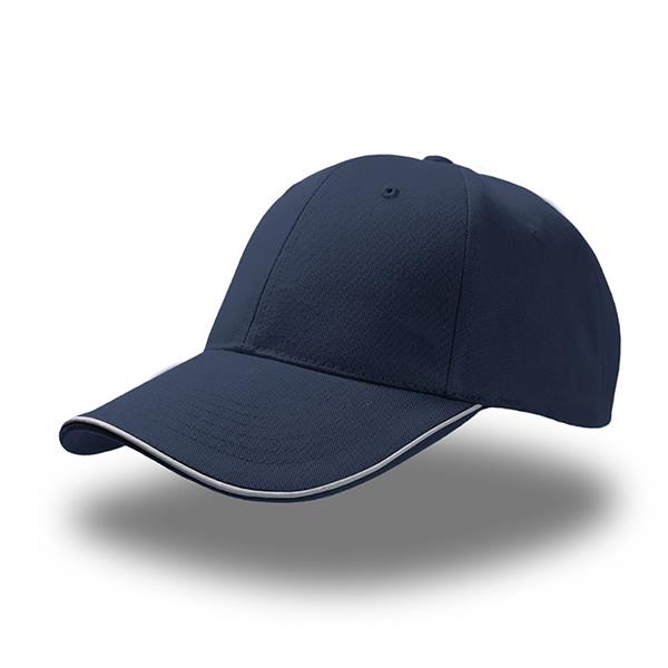 Boné de basebol com 6 painéis em sarja 35% algodão e 65% poliéster.