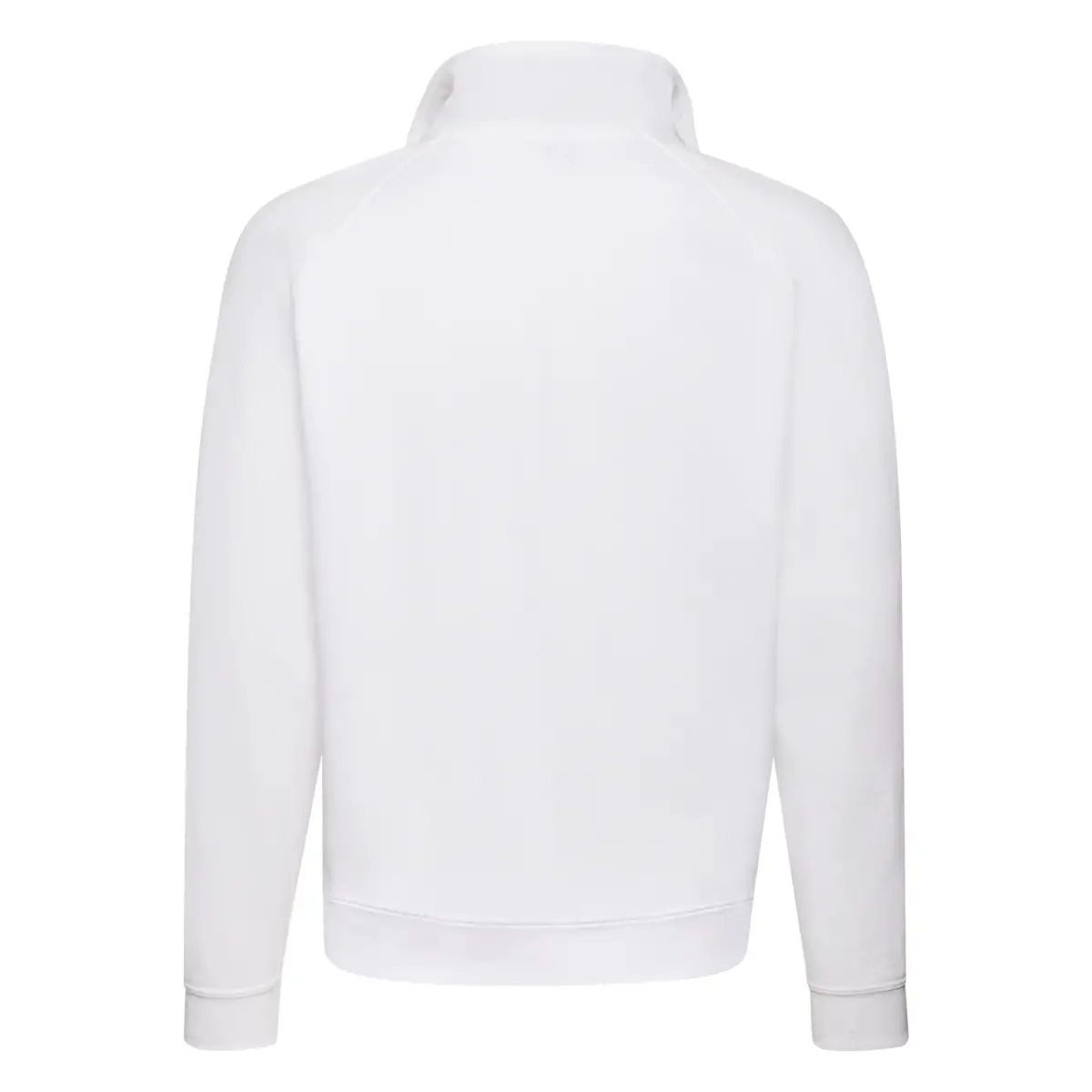 Gola alta com zíper, mangas raglan, punhos em malha canelada e bainha inferior
