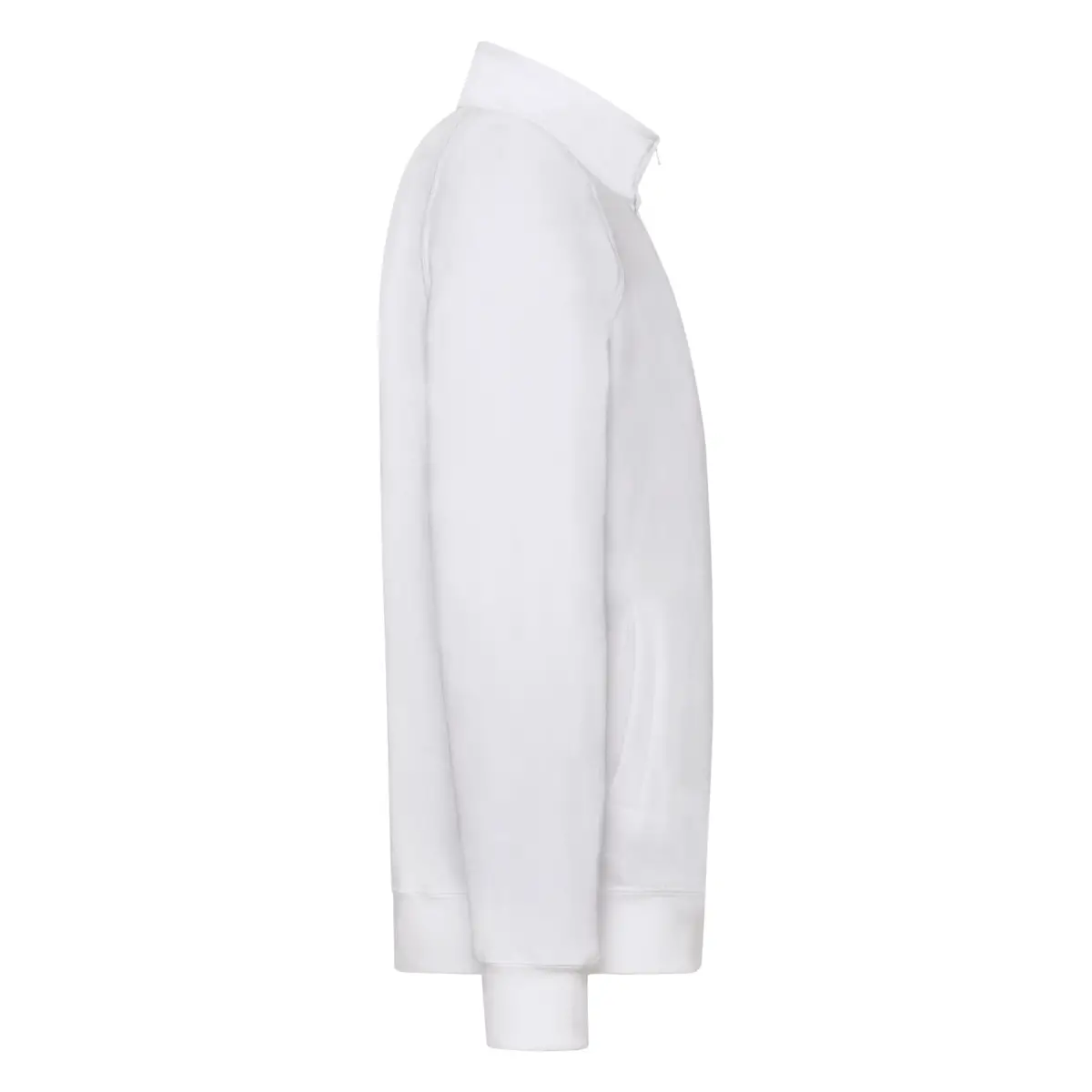 Meio-fio de gola alta, mangas raglán, 2 bolsos, punhos e cintura de canalé com licra.