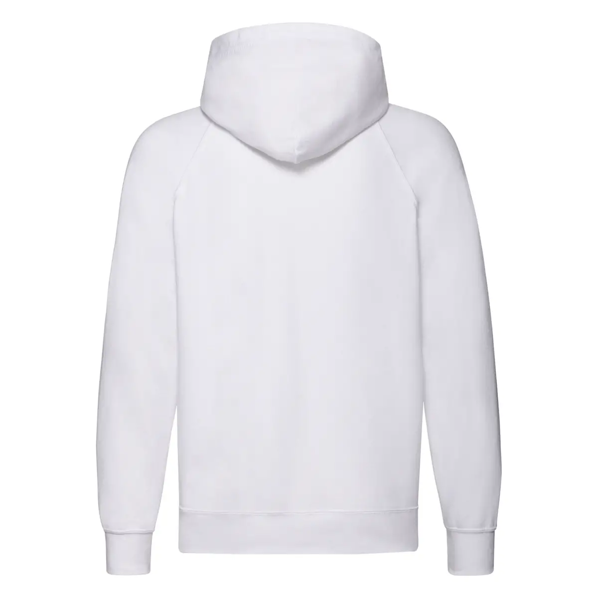 Pelúcia leve, capuz com cordão, mangas raglan, zíper completo, dois bolsos frontais, punhos e cintura em algodão/lycra, costura dupla na cava, gênero tubular.